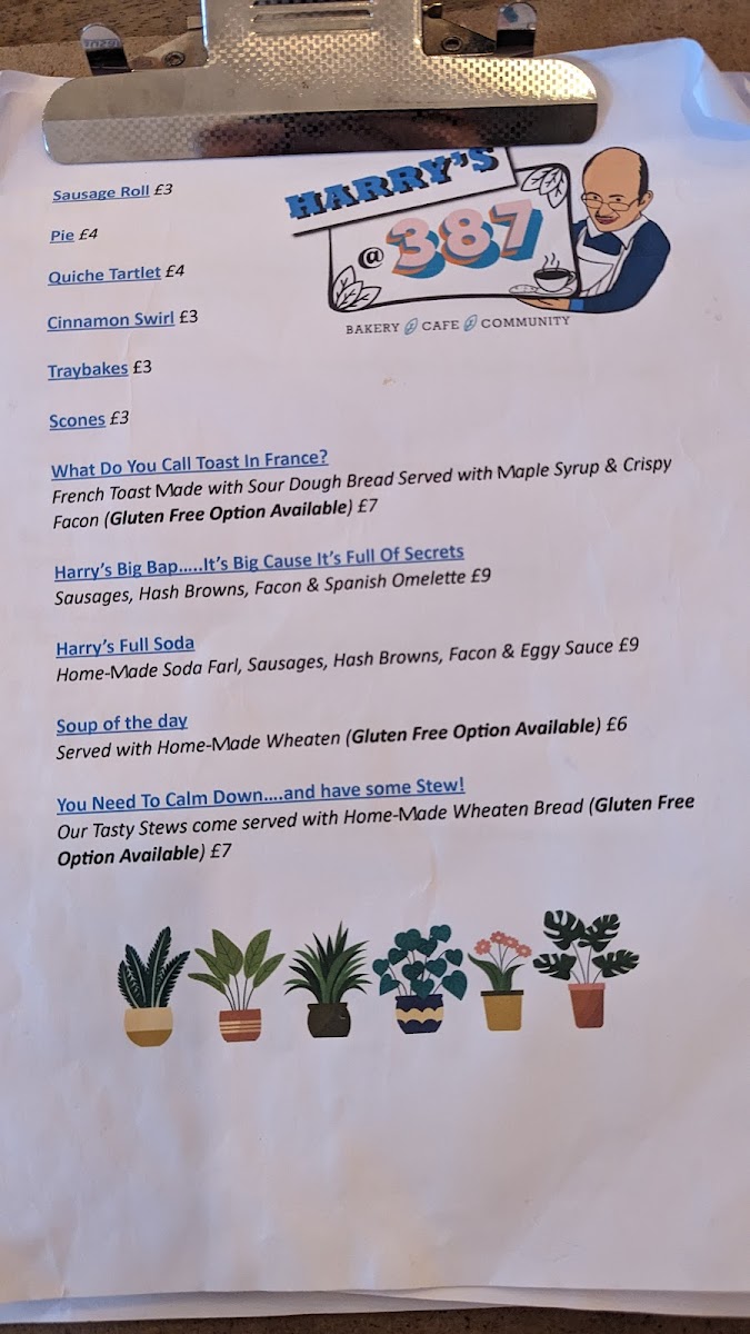 Harry's @387 Menu